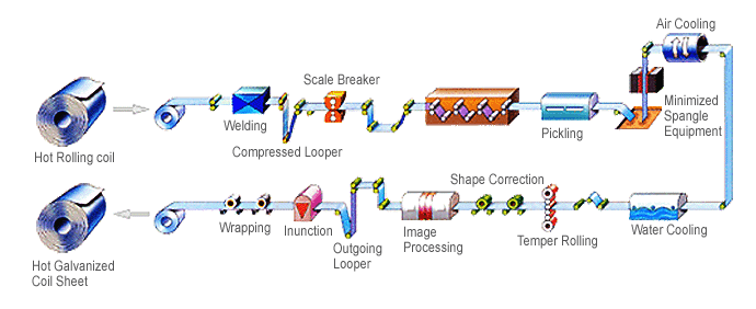 Hot Galvanized Coil Sheet is a plated product; in order to produce this product, pickled hot rolled coil undergoes heat treatment in CGL to secure certain quality of material and go through zinc plating bath.
